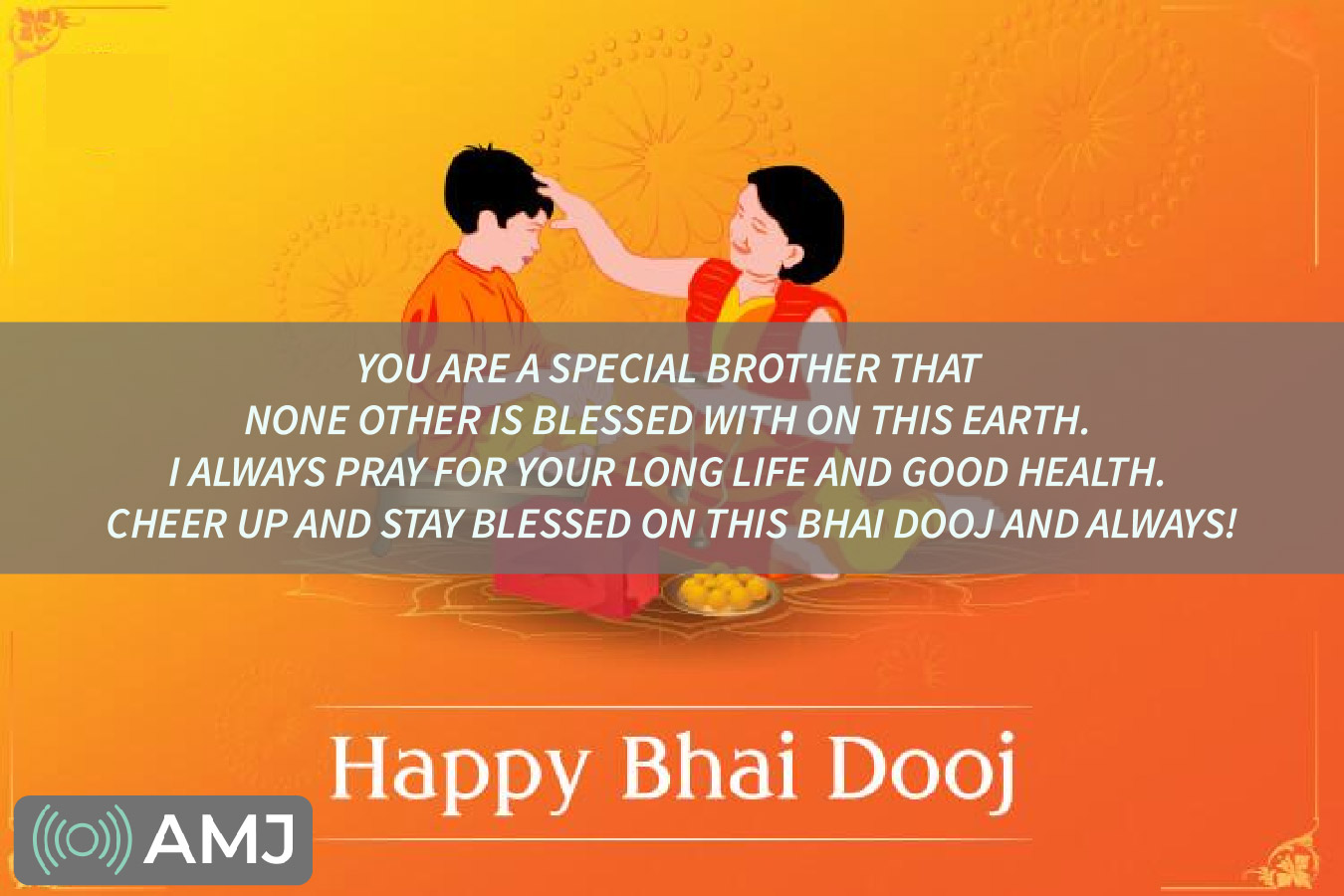 You are a special brother that none other is blessed with on this earth. I always pray for your long life and good health. Cheer up and stay blessed on this Bhai Dooj and always!