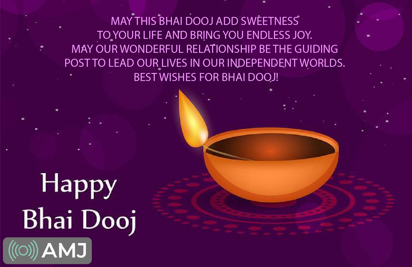 May this Bhai Dooj add sweetness to your life and bring you endless joy. May our wonderful relationship be the guiding post to lead our lives in our independent worlds. Best wishes for Bhai Dooj!