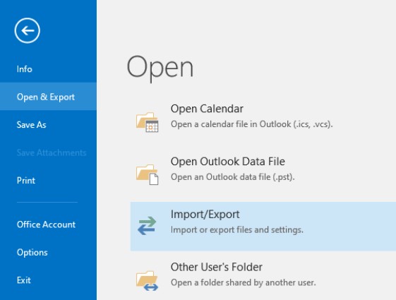 - Click on Open & Export > Import/Export.