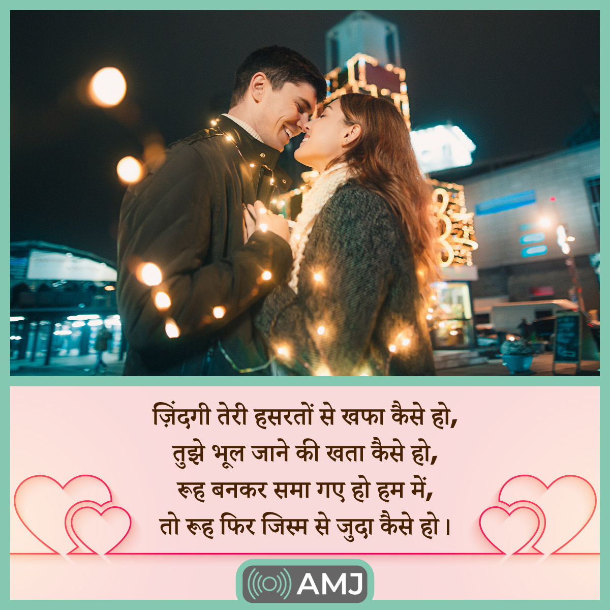 Love Shayari is written to express love. These types of Shayari are usually exchanged between lovers. If you are someone who is not good with putting your feelings into words, you can send love Shayari to your partner.