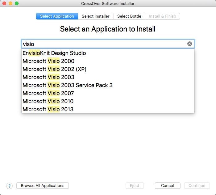 - After you install the program, enter the Windows application name you want to run on your Mac. Just like WineBottler, CrossOver also will work to search its database and show you the list of applications.